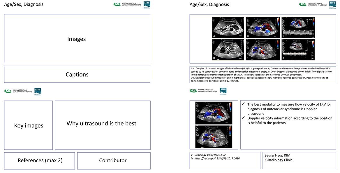 Once the submitted abstract has been accepted for Informal Scientific Presentation_Ultrasound, the Best, presenters are required to submit the presentation file in PPT format including texts, images, video files, etc. Please follow the sample presentation format below when preparing a presentation.