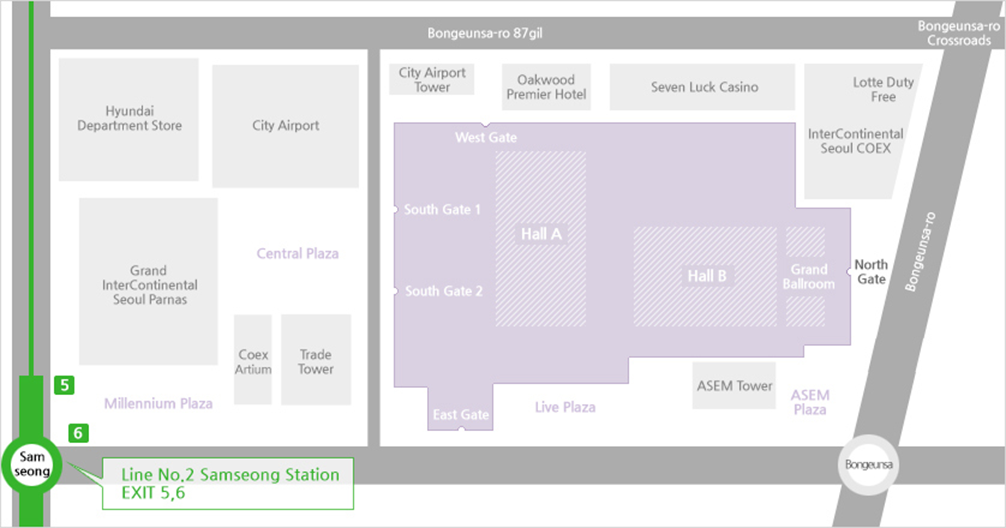 After coming out from Samseong Station in the direction of exits 5 and 6, follow the sign that written ‘COEX/COEX Mall’ to enter the COEX south gate